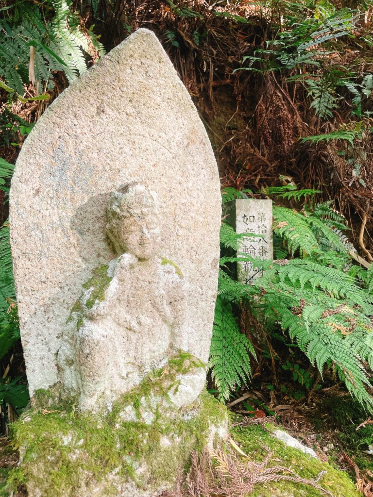 私は、いつも登る山でお気に入りの観音菩薩像があります。それが、如意輪観音像です。山道には西国巡礼の観音像がずらり。その中で、第拾八番札所の如意輪観音像の穏やかな表情と余裕のある雰囲気に一目惚れしました。