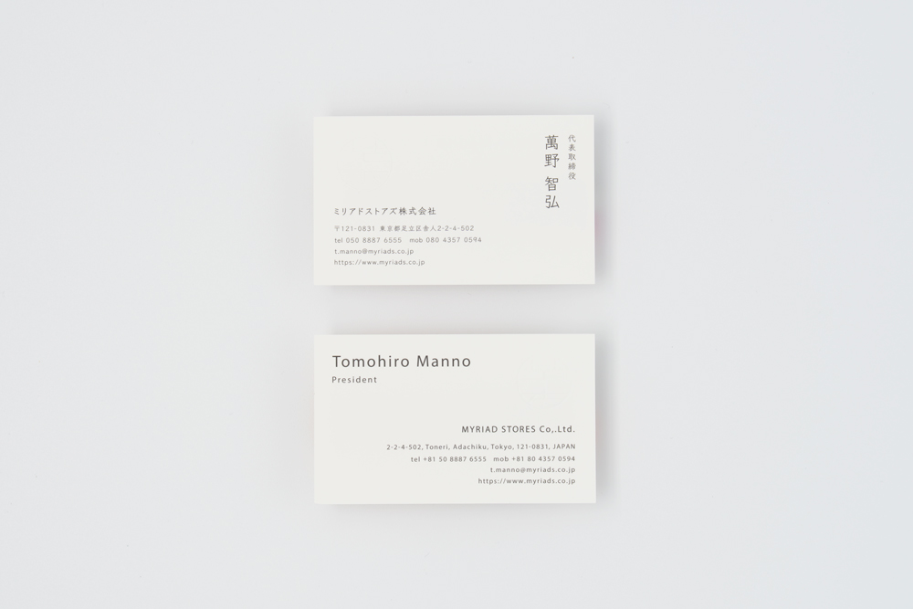 余談として、制作上名刺の“表”と “裏” がありますが、個人的には表も裏もないと思っています(両面刷りの場合)。どちらが表になっても裏になっても伝わるからです。表裏というより印象別と言う方がしっくりきます。(*ただ本文では便宜上、表裏という言葉と使用します。)